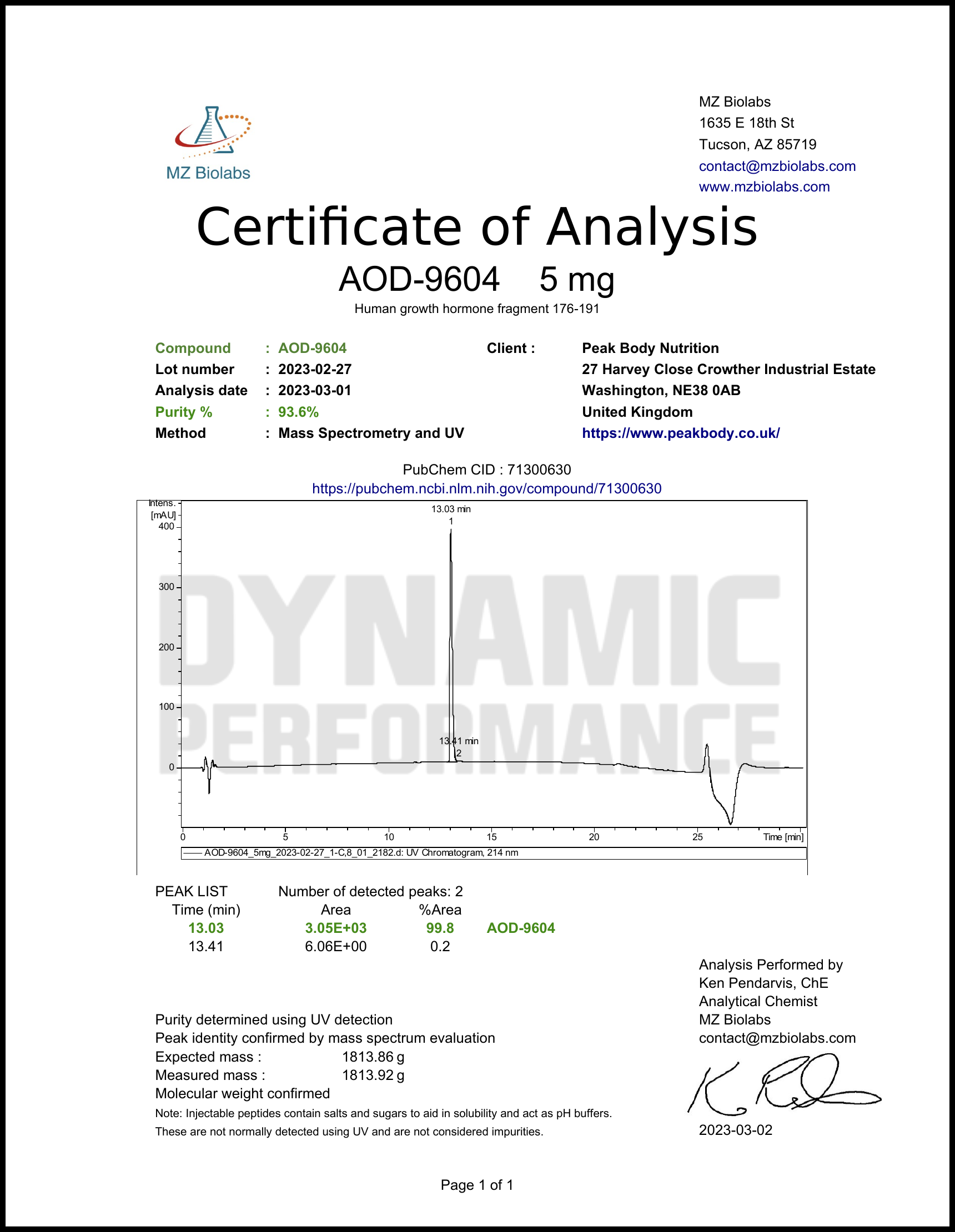 AOD-9604 is a synthetic peptide fragment derived from the C-terminal end of human growth hormone (hGH). It is commonly studied in research models for its potential role in lipid metabolism, fat breakdown (lipolysis), and metabolic regulation pathways.
