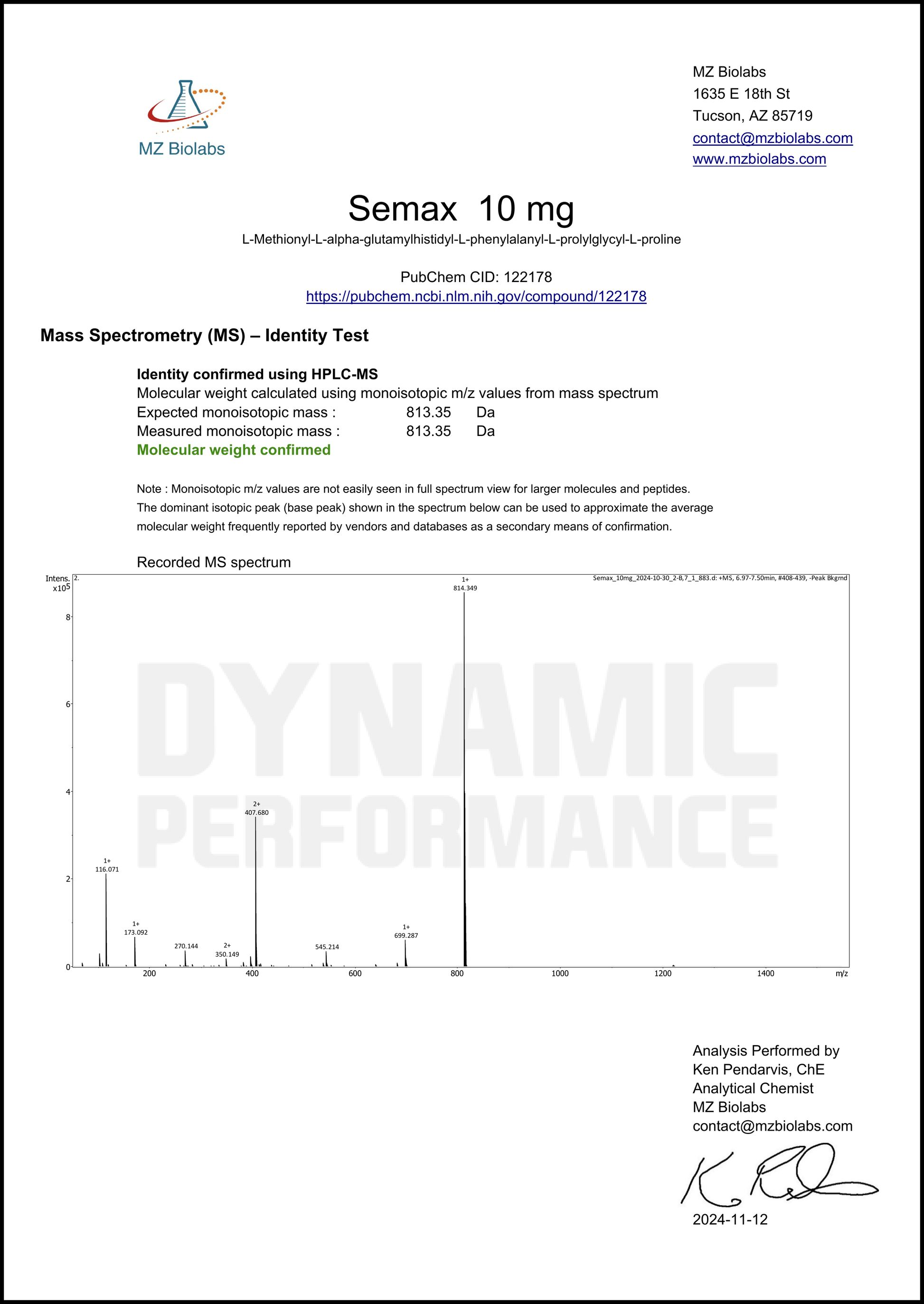 Semax is a synthetic research peptide derived from a fragment of adrenocorticotropic hormone (ACTH). It is commonly studied for its potential neuroprotective properties and its role in cognitive and neurobiological research models.
